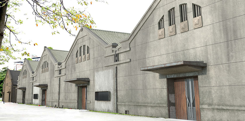 華山高塔區建於1920年前後,最早是做為釀造米酒的空間與實驗室,因依照需求逐步完成,比鄰的三棟有著像當不同的工法與外觀。建築物在視線上的高低造成鮮明活潑的印象外,每排窗戶為了不同的實用需求有著不同層次的變化,卻都同樣精緻優雅。