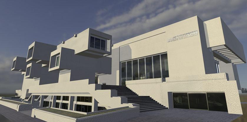 位於花博公園美術園區內,創造建築藝術與自然庭園結合之景觀。採「井」字形懸臂飛廊的形式,將傳統建築元素之斗拱堆砌為主體架構,四周牆面設計使用整片玻璃採光,中樞內庭承接自然光源,光影隨時間移動而變化。